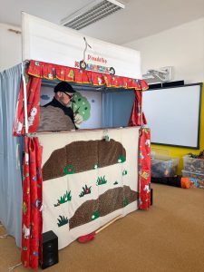 V pátek jsme se zasmáli a poučili o tom, jak si to žije na zahradě. Provázeli nás zahrádkou – krtek, kos ,zahradník i žízala. Byli jsme přímými svědky přeměny housenky v motýla běláska. Do pohádkového světa nás zavedlo nase oblíbené divadlo Koloběžka!