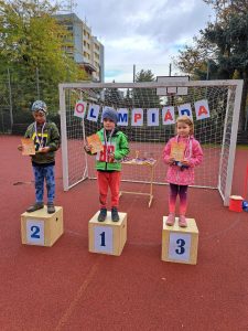 V pátek 17.10. třída Veverek jako každým rokem navštívila Dům UM a v olympijských disciplínách reprezentovala naši školku. Děkujeme za získání poháru do naši vitríny slávy. Děti si sportování užily a byly úspěšné.